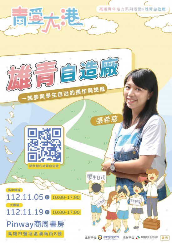 四、活動內容及報名方式請參閱青年局官網活動專頁(https://pse.is/5ayfgh),若有活動相關問題,請洽青年局綜合規劃科薛小姐(電話:07-7995678轉2349、2343)。
