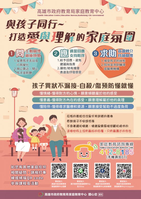 家庭互動相關問題亦可撥打家庭教育諮詢專線412-8185,歡迎學校及家長多加運用。