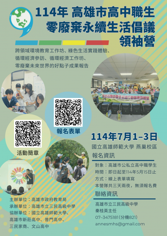 1、紙本寄送報名資料至本市三民高中學務處(高雄市三民區金鼎路81號)。